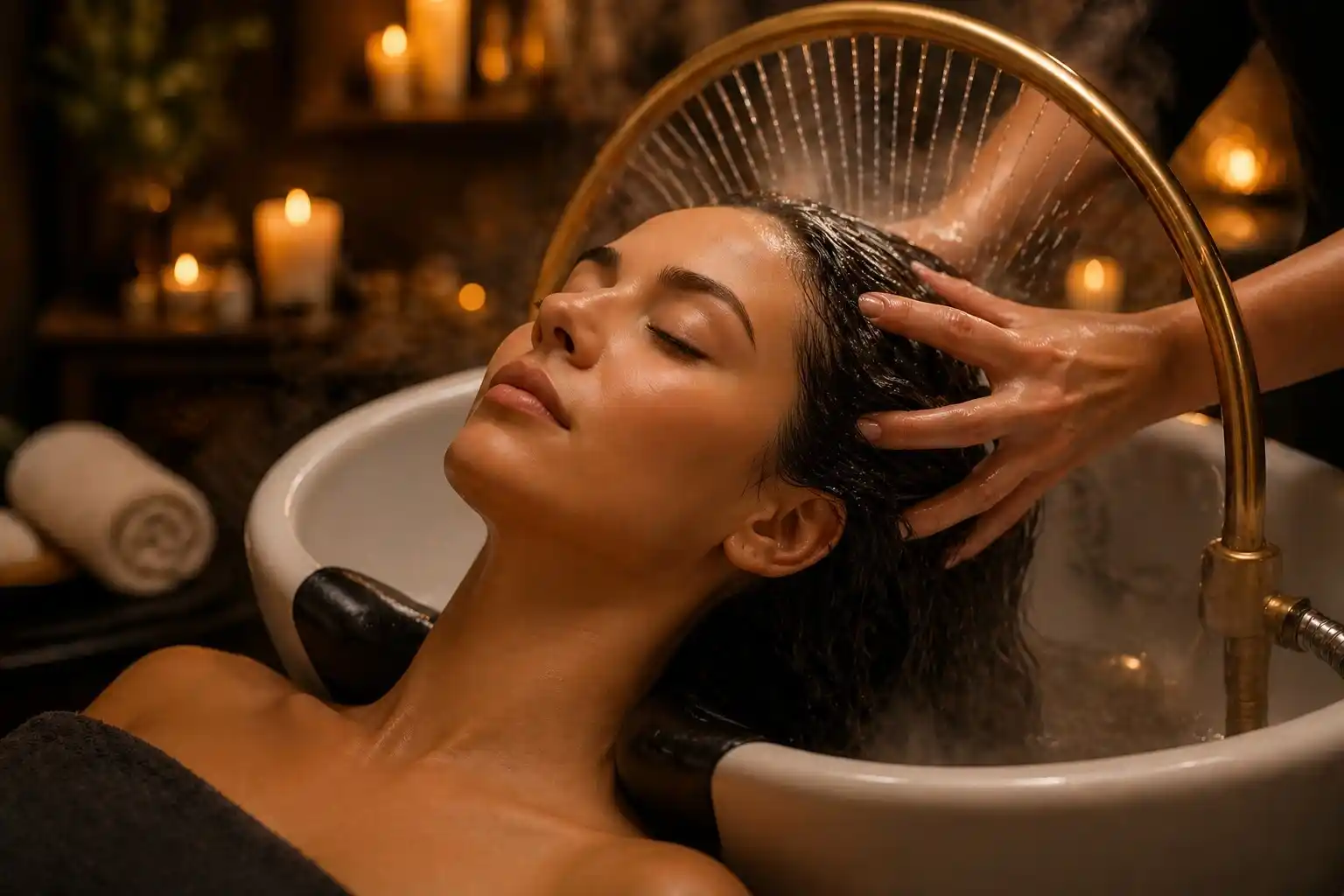 Un ritual enfocado en la relajación profunda y el cuidado del cuero cabelludo. Incluye:
